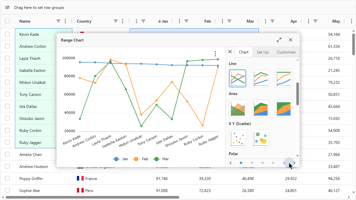 AG Charts 为 AG Grid 中的集成图表功能提供支持 – 我们市场领先的数据网格库,90% 的财富 500 强企业都在使用。购买 Enterprise Bundle 许可证以访问 AG Grid 和 AG 图表中的所有 Enterprise 功能。
